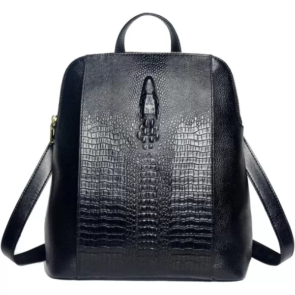 COOLCY New vintage Women Real Genuine Leather Backpack Purse SchoolBag(Black)