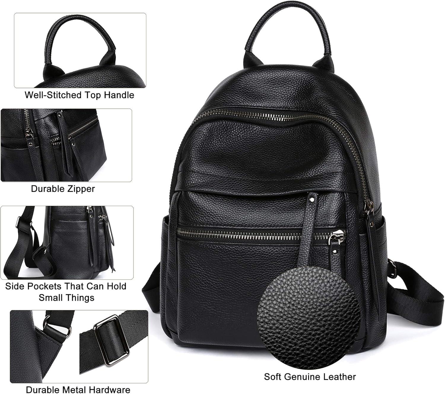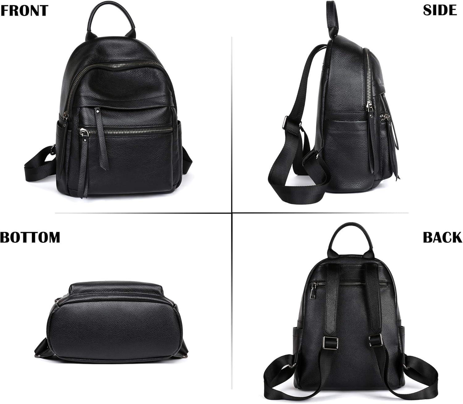 COOLCY Genuine Leather Backpack Purse for Women Multi-functional Elegant Daypack for ladies (Black) Small(Black)