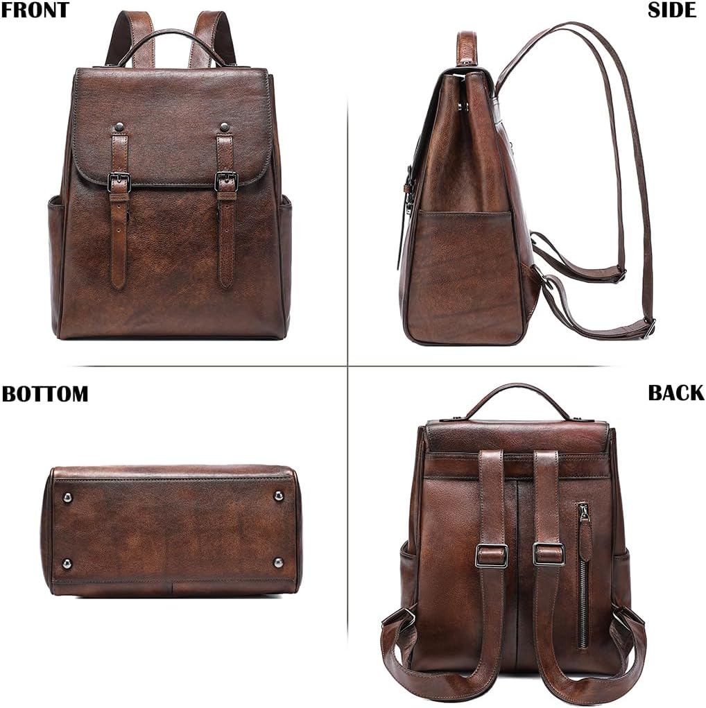 COOLCY Genuine Leather Backpack Purse for Women Vintage Rucksack Retro Daypack