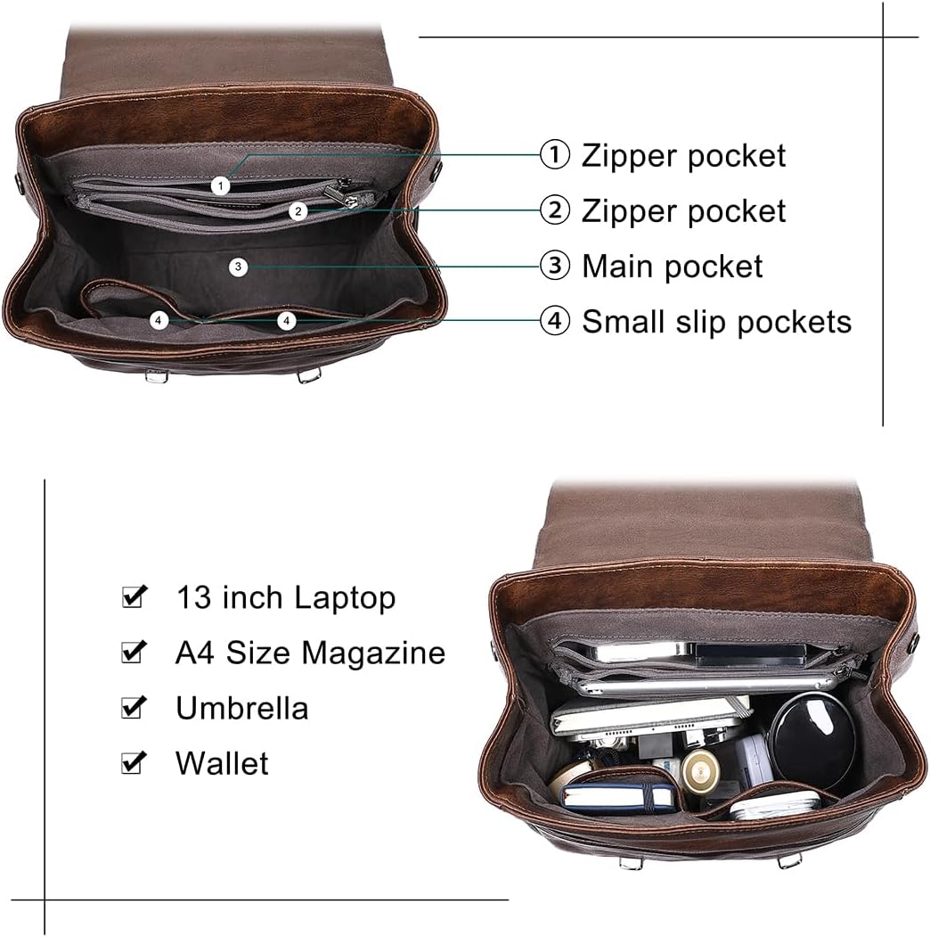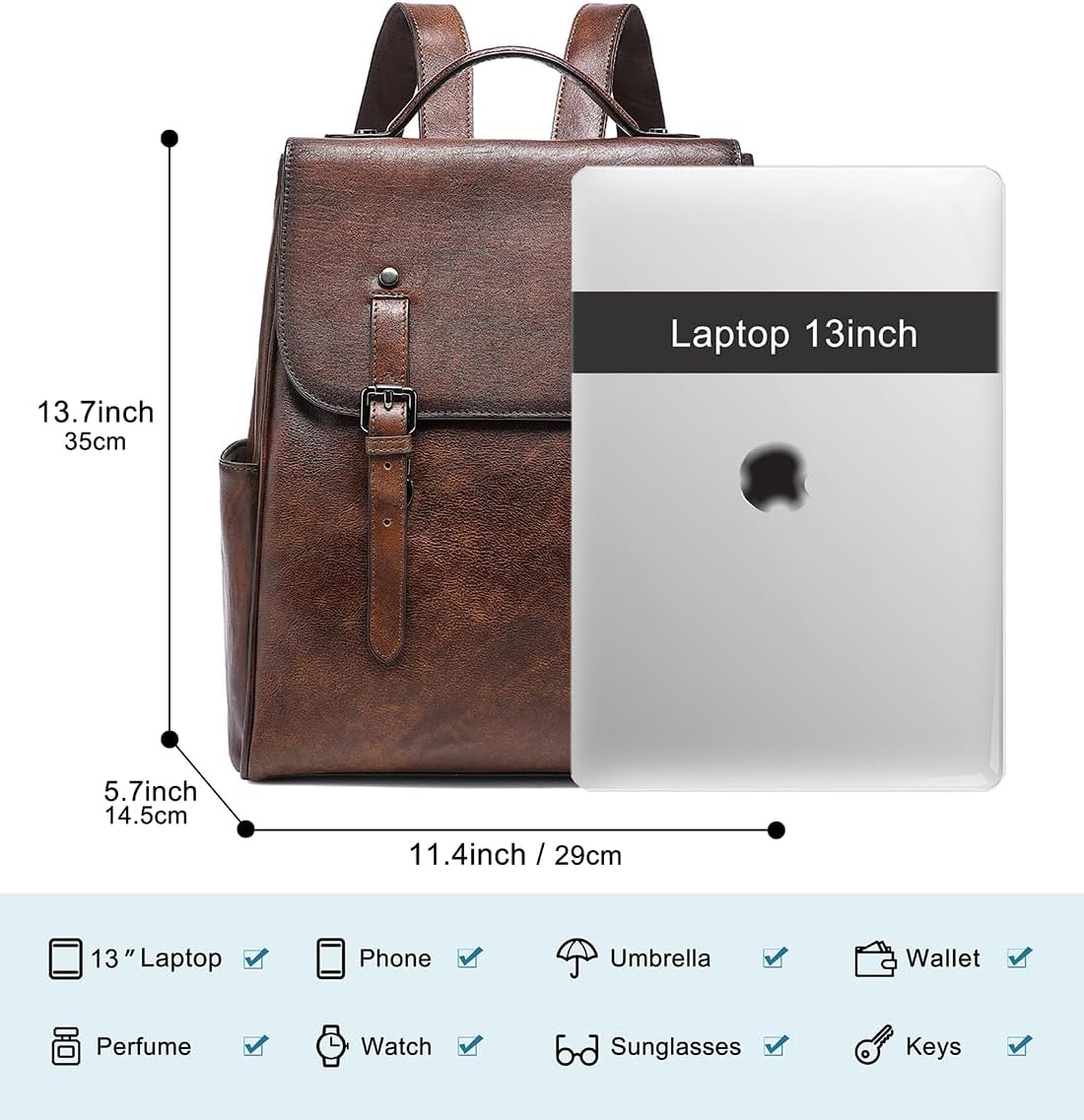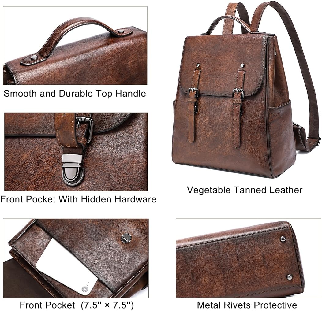 【Unique Design】 With its vegetable tanned full grain vintage leather, gunmetal gray hardware, and fashionable vintage appearance, this backpack will never go out of style. This backpack is made using high-quality materials and elaborate craftsmanship. It has a multipurpose design and is the perfect gift for your wife, mother, daughter, or friends.