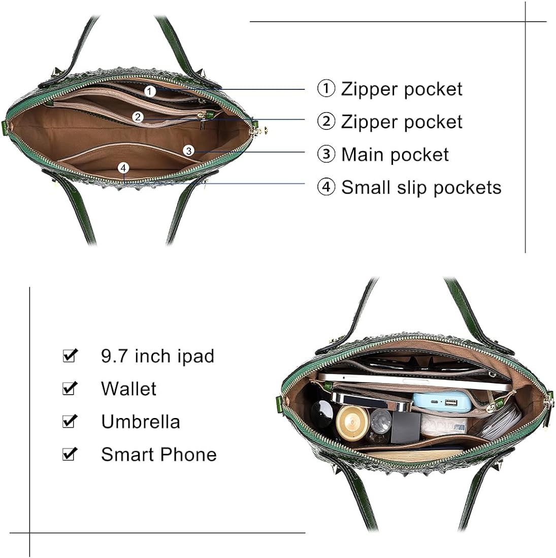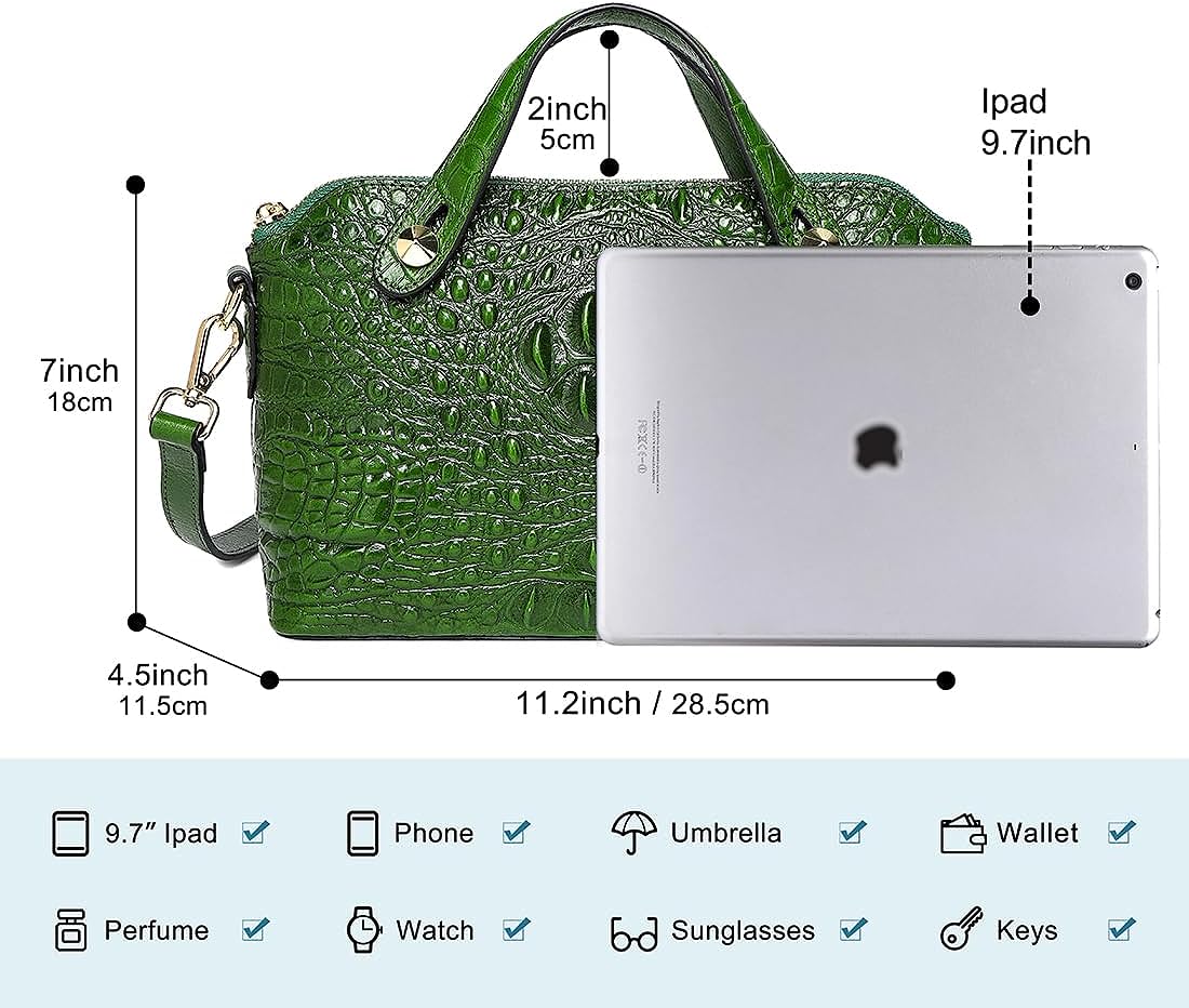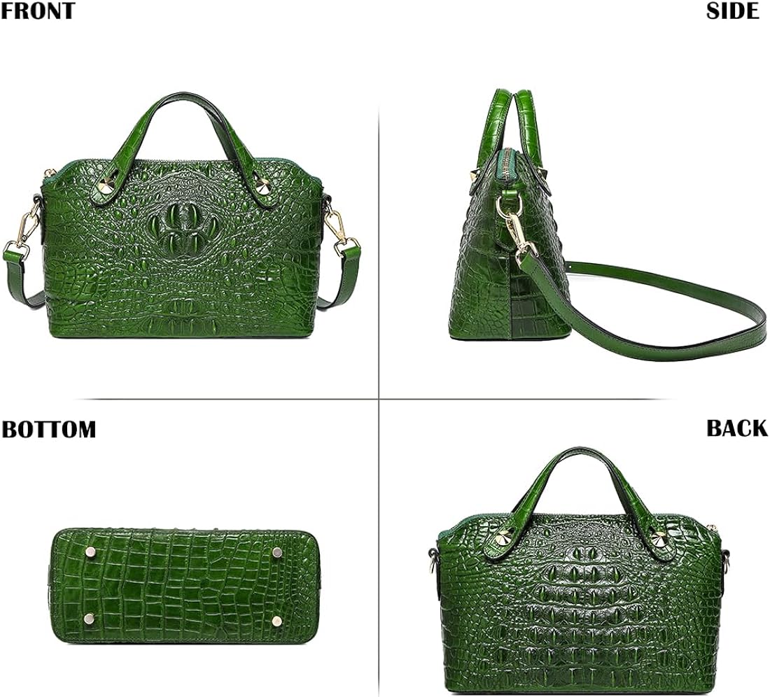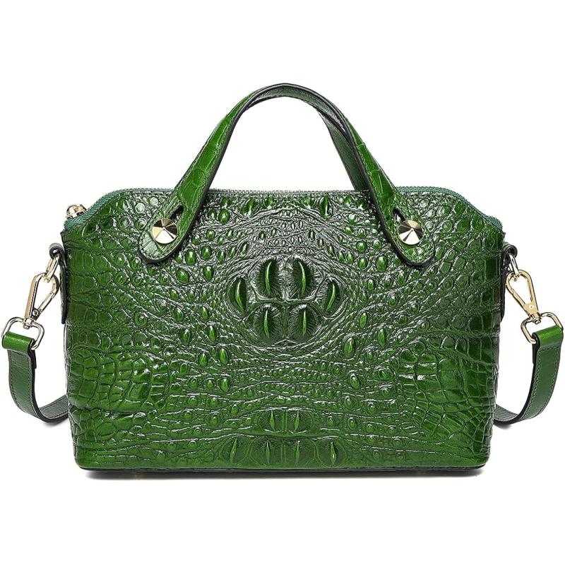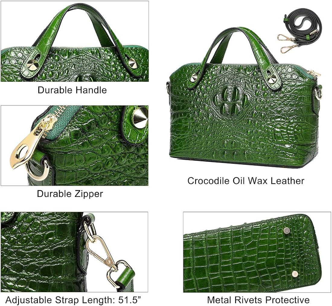 COOLCY Genuine Leather Purses for Women Crocodile Crossbody Small Satchel Bag Designer Shoulder Handbags for Ladies(Green)