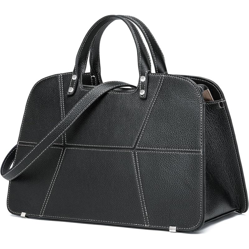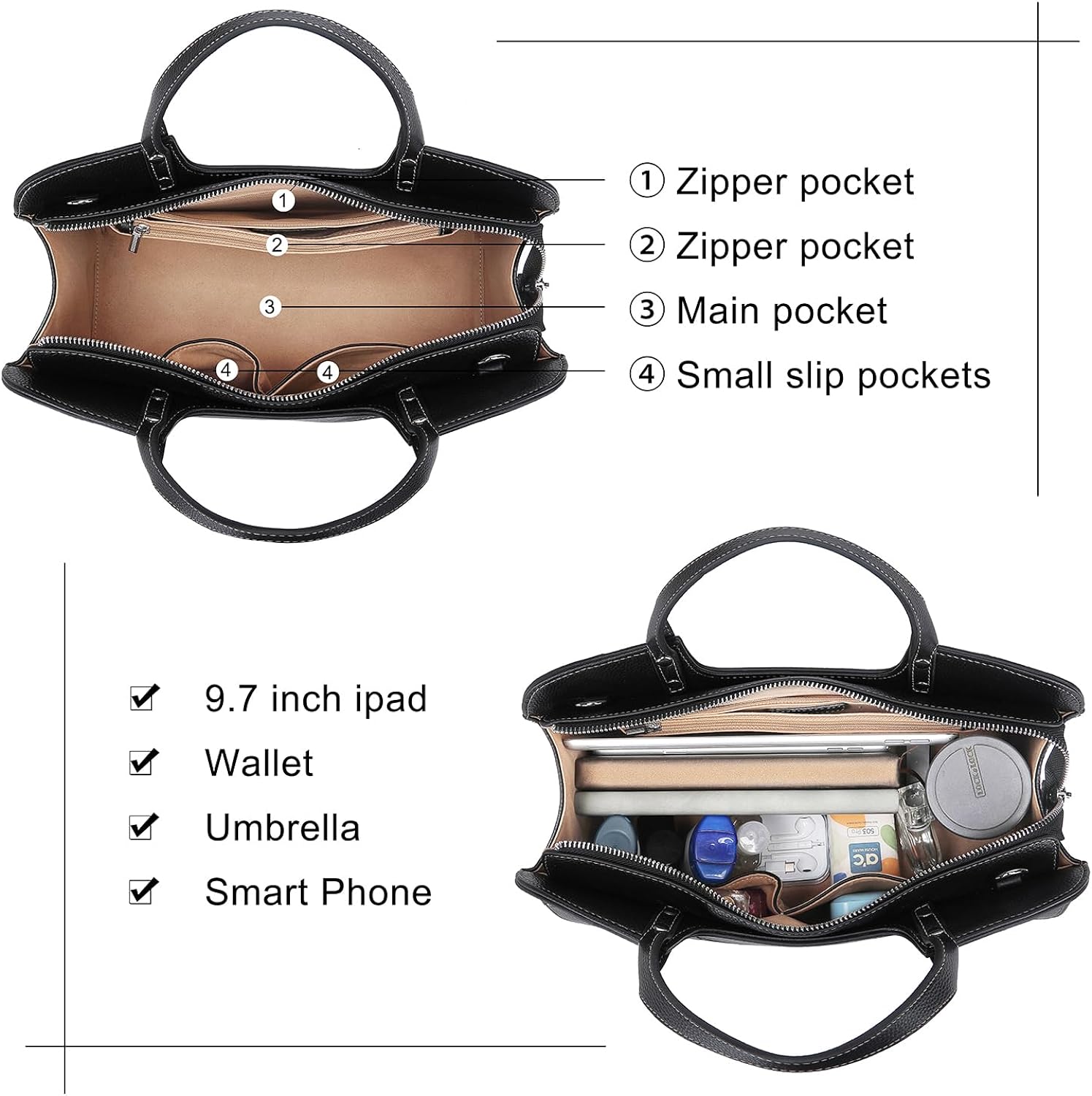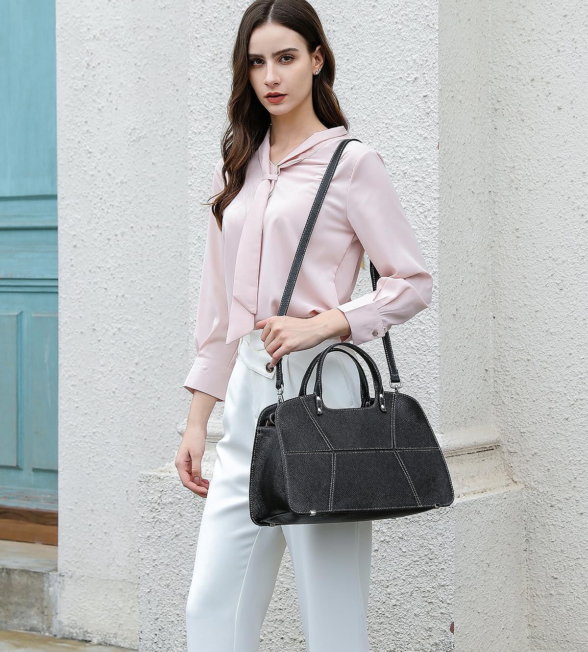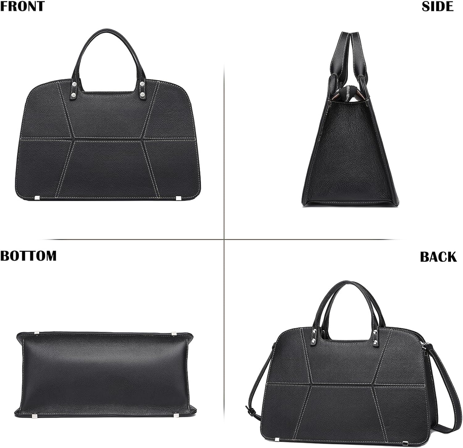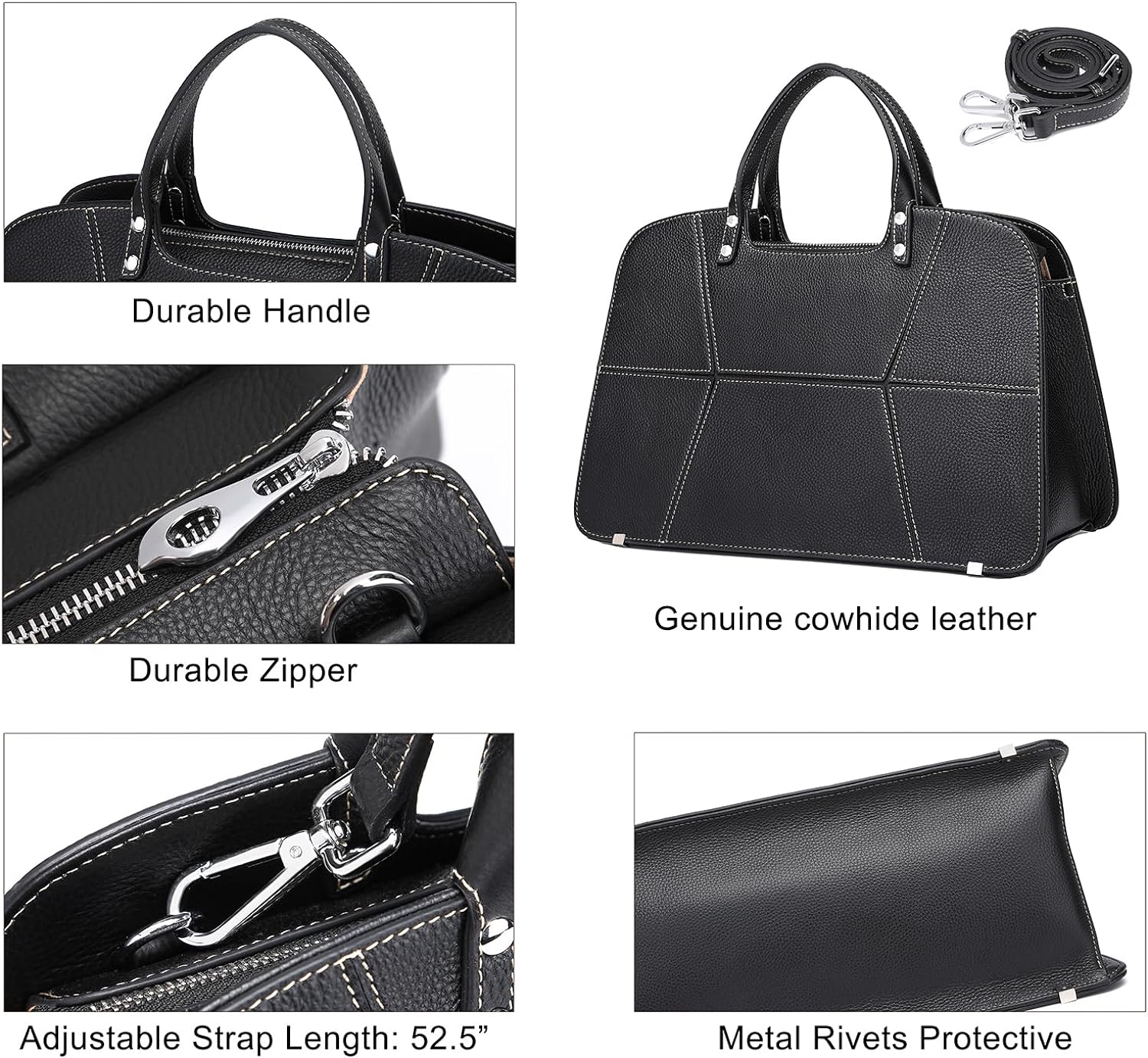 COOLCY Genuine Leather Satchel Purse for Women Handbags Crossbody Shoulder bags Designer Top Handle Tote Bag(Black)