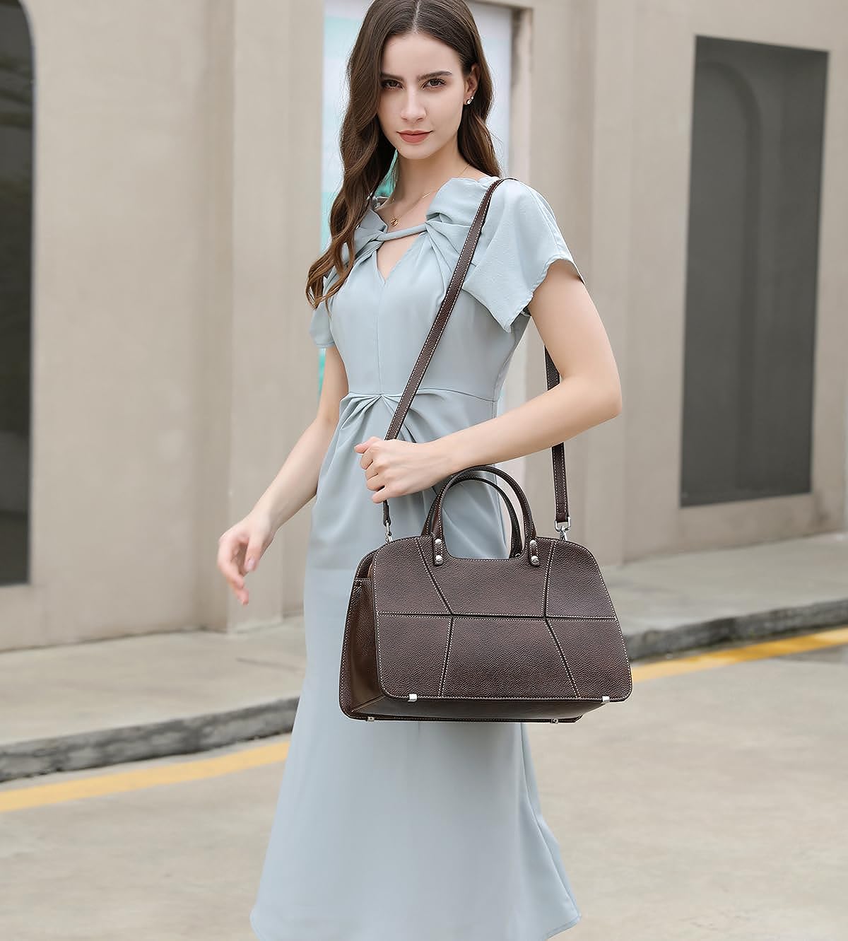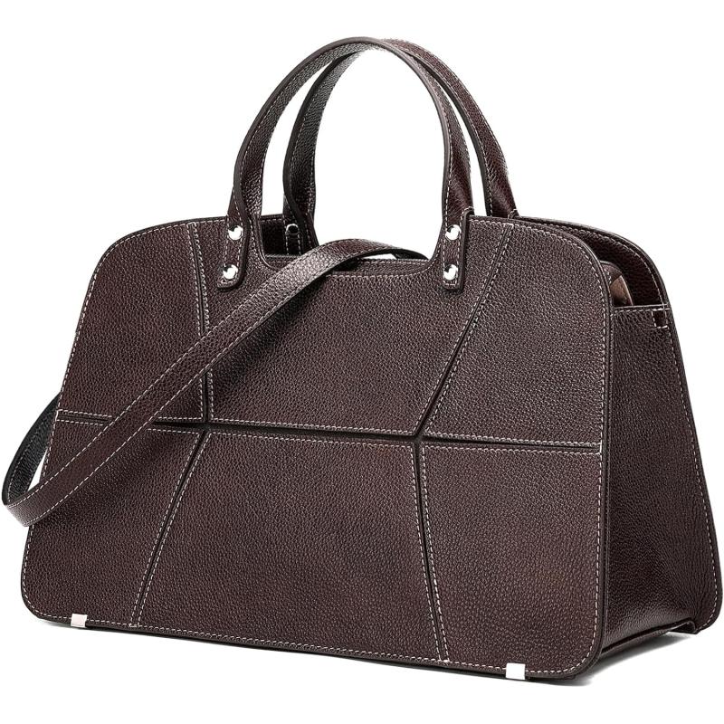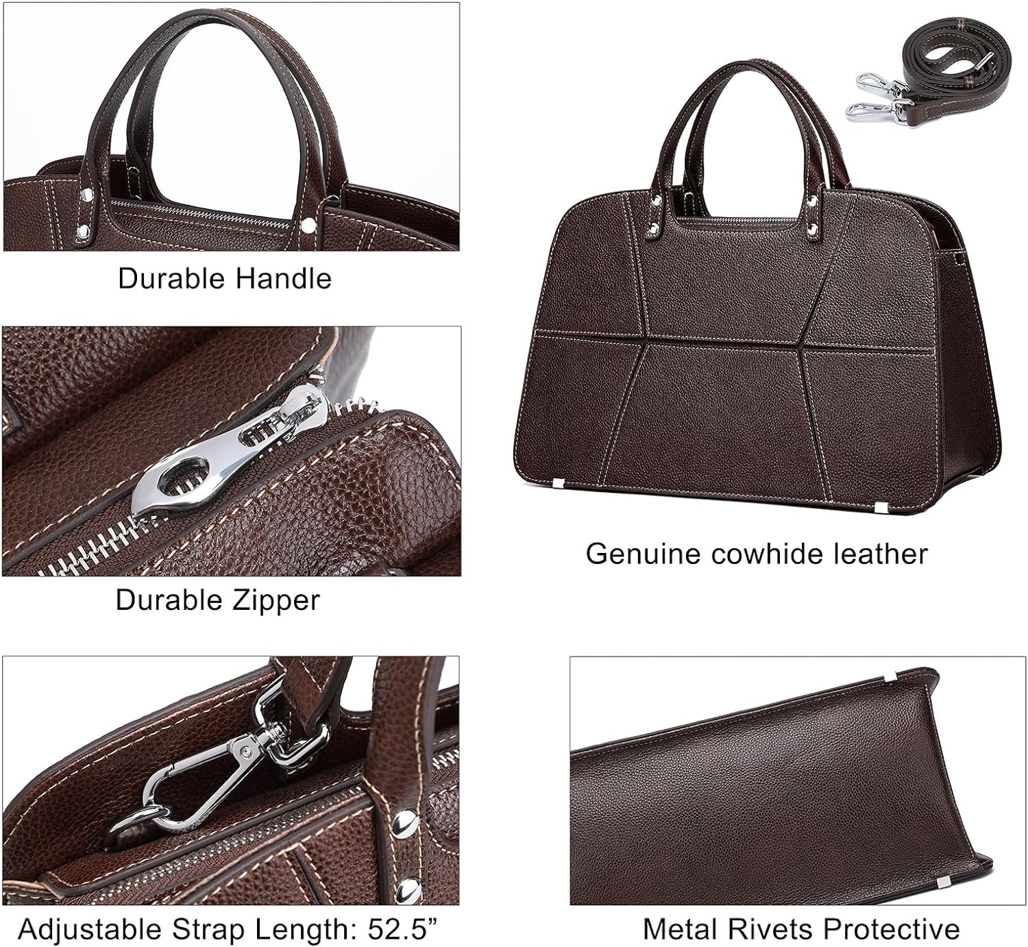 COOLCY Genuine Leather Satchel Purse for Women Handbags Crossbody Shoulder bags Designer Top Handle Tote Bag(Coffee)