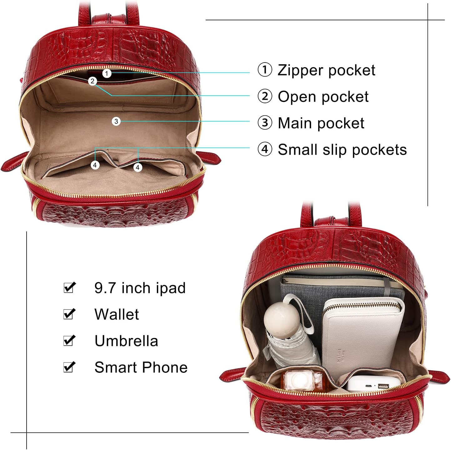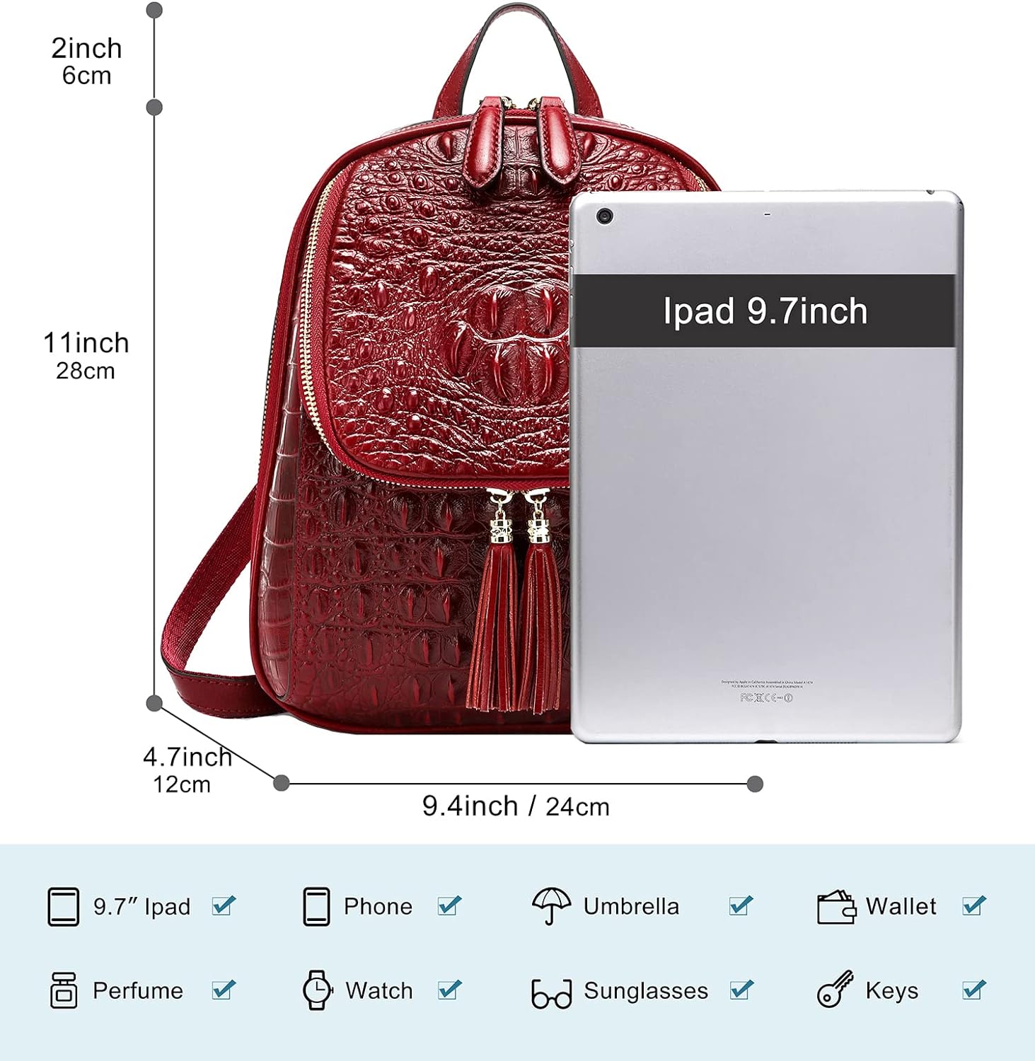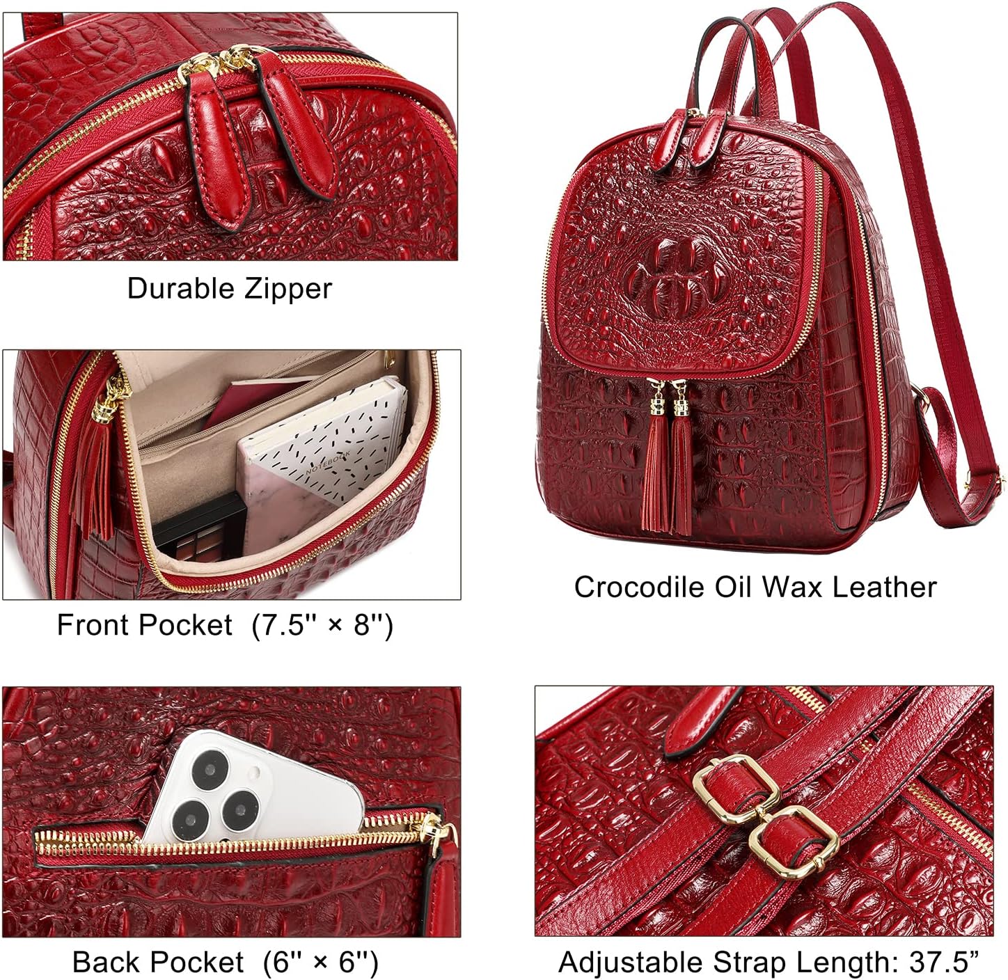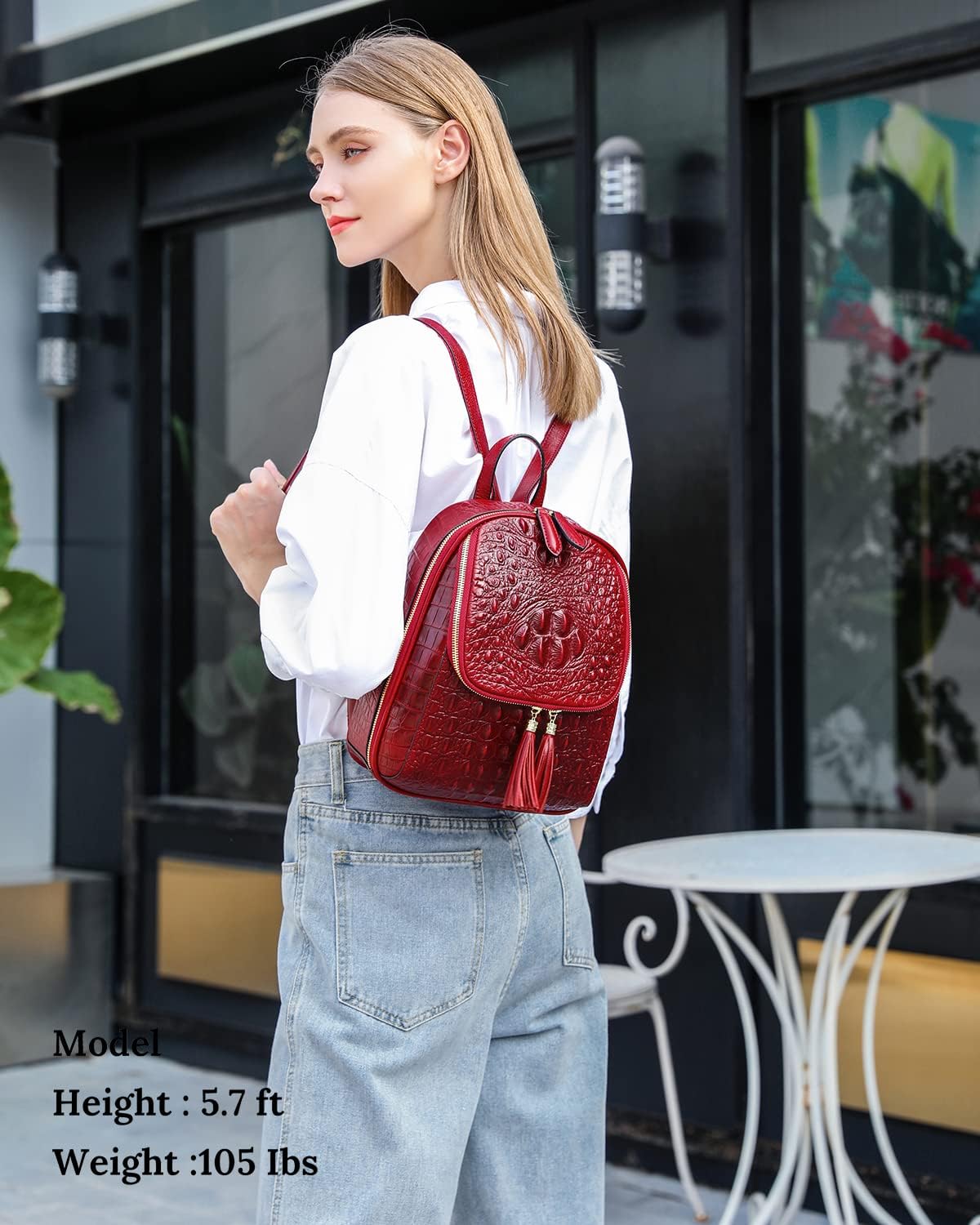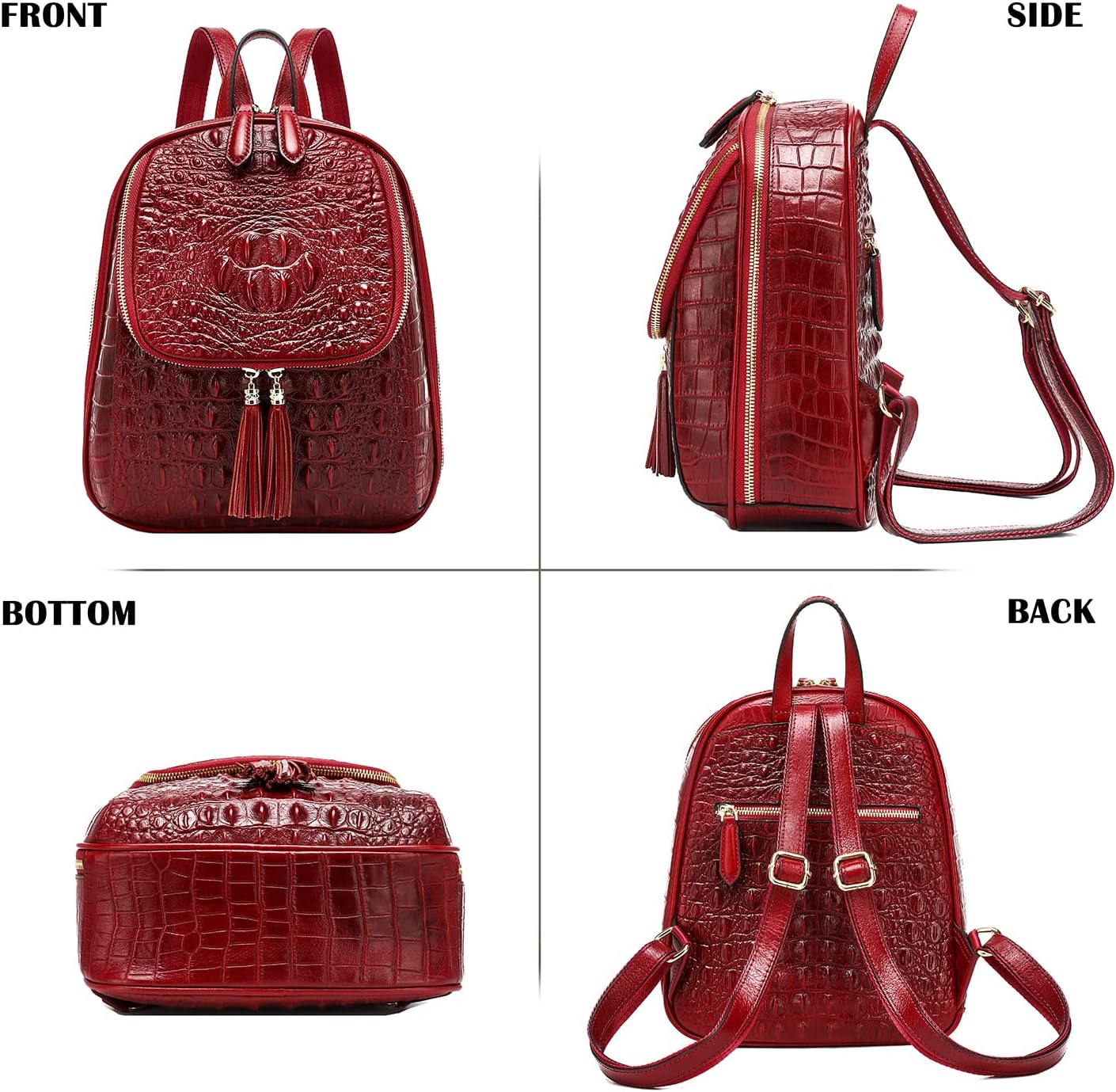 COOLCY Small Crocodile Leather Backpack Purse for Women Designer Ladies Fashion Bag (Wine Red.)(Green.)