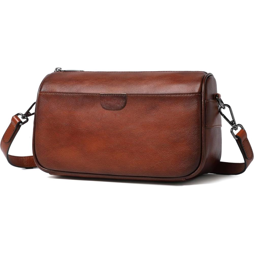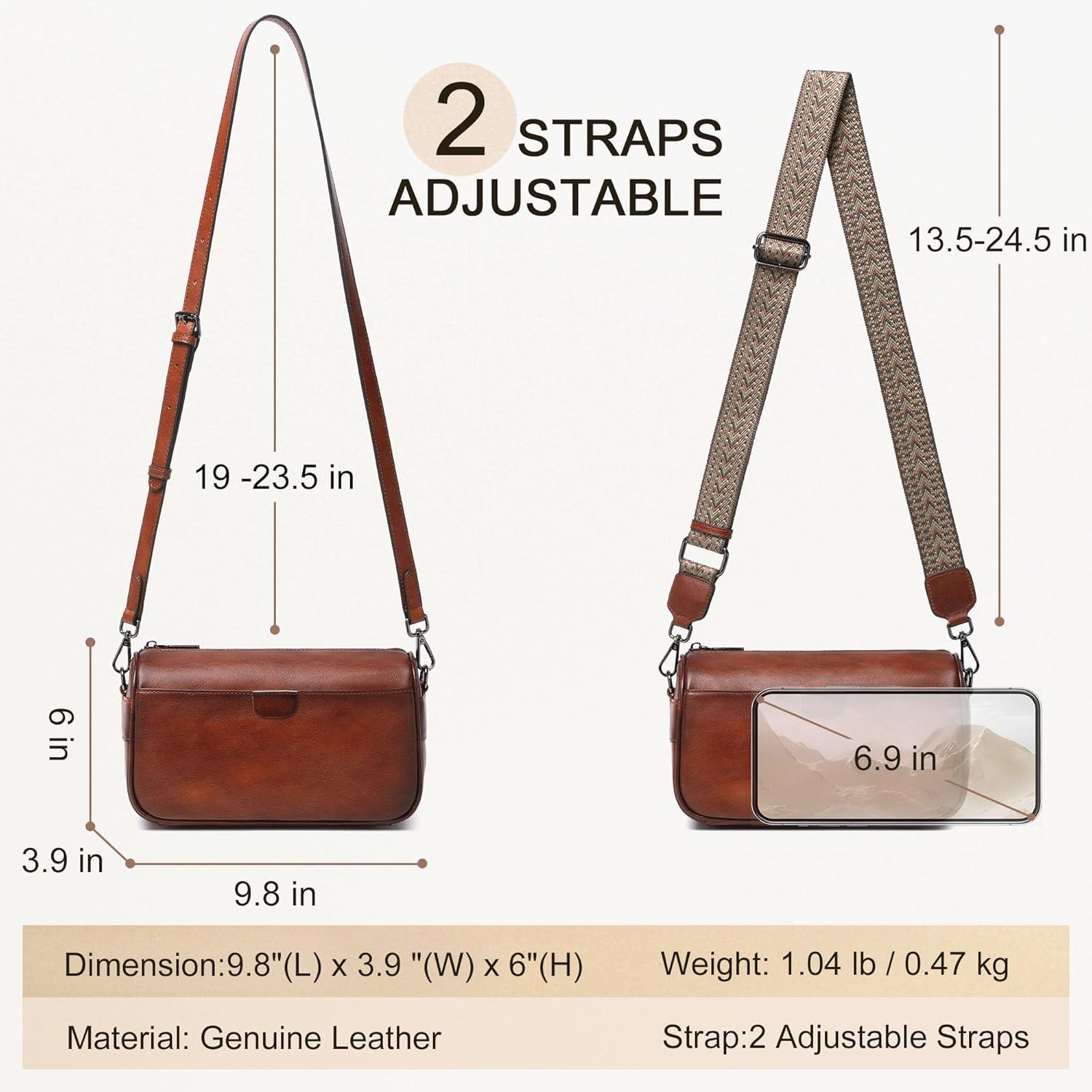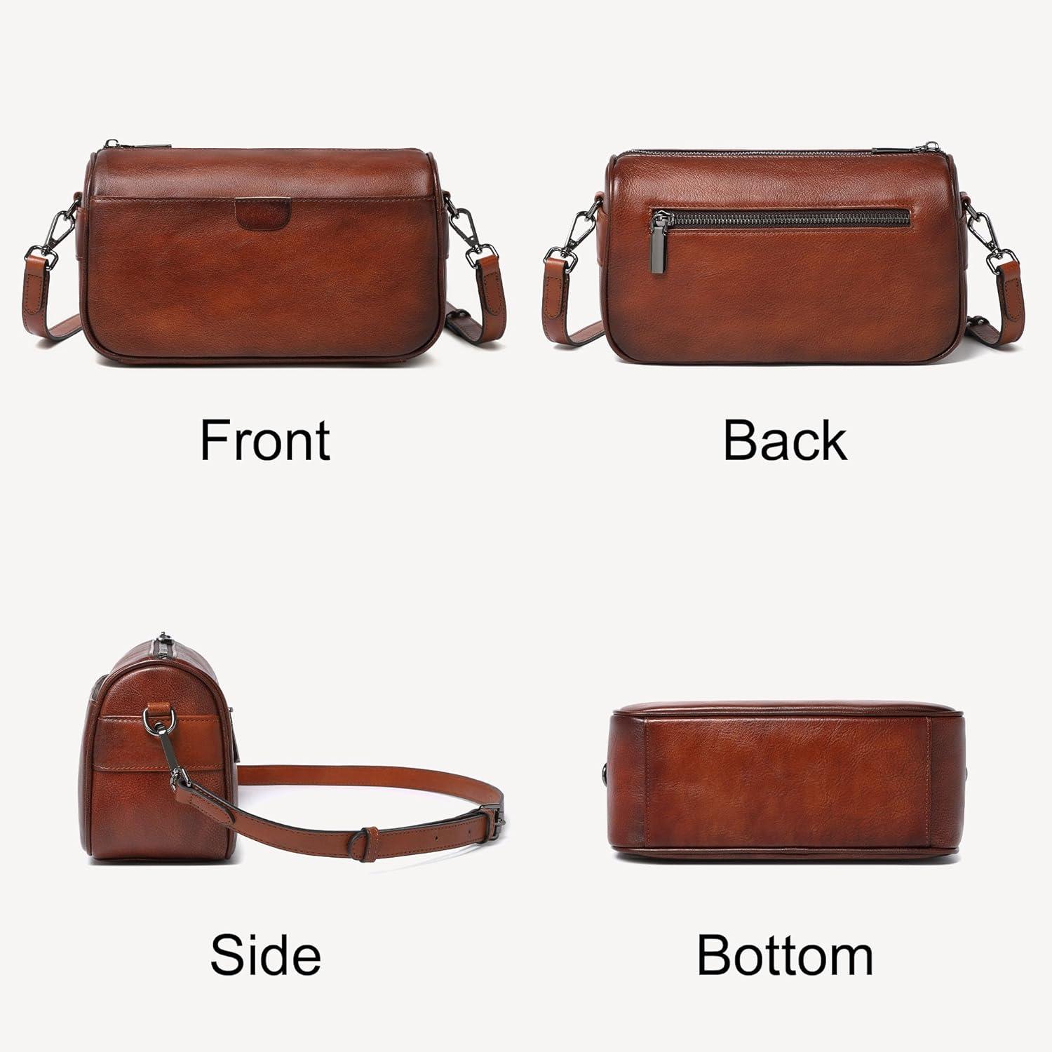 Genuine Leather Crossbody Purses Bag for Women,Travel Casual Handbag, Small Shoulder Cross body Purse with Two Straps(Brown)